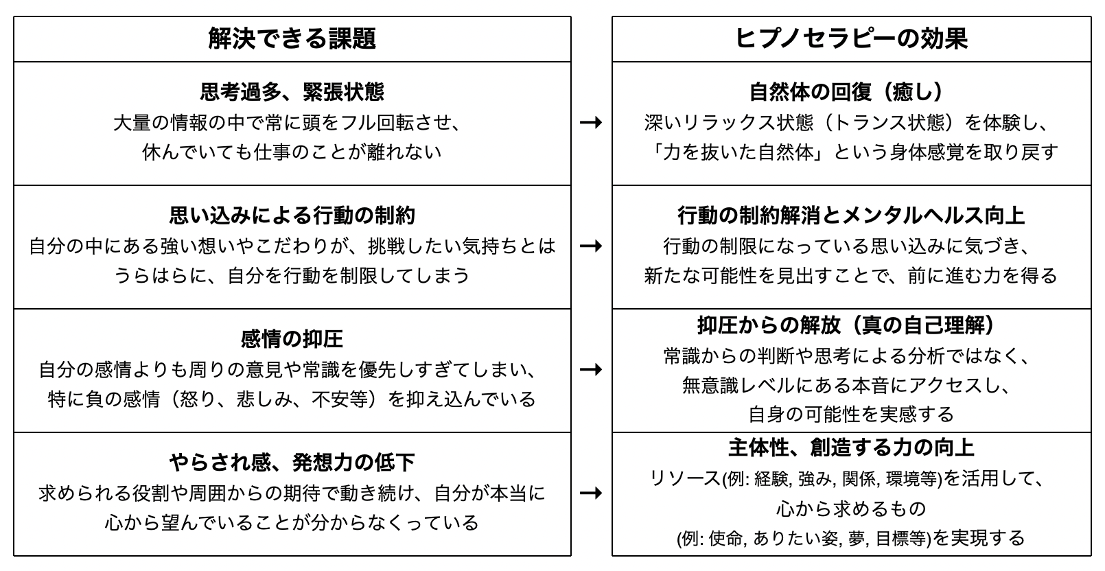 ヒプノセラピーは、人が本来持っている「深い自己認知」と「創造性」にアクセスするための考え方・スキルであり、AI時代に欠かせないものです。